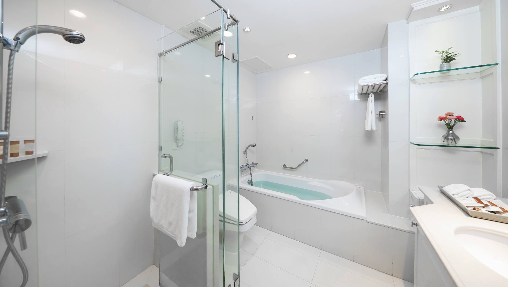 This elegant furnishing two-bedroom suite offers a king-sized bed in master room and a queen-sized bed in the second bedroom. 2 spacious bathroom with separate bathtub and shower.