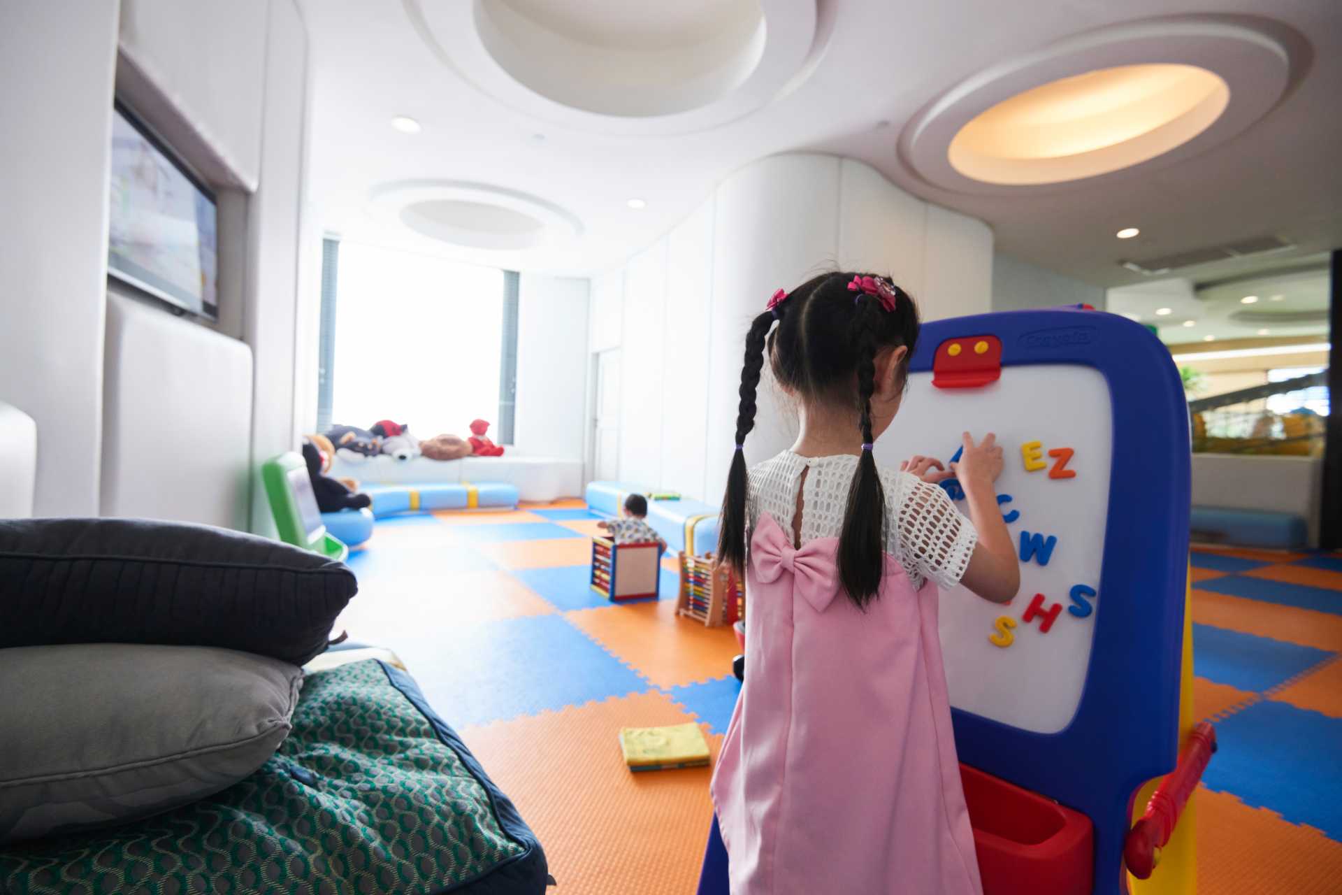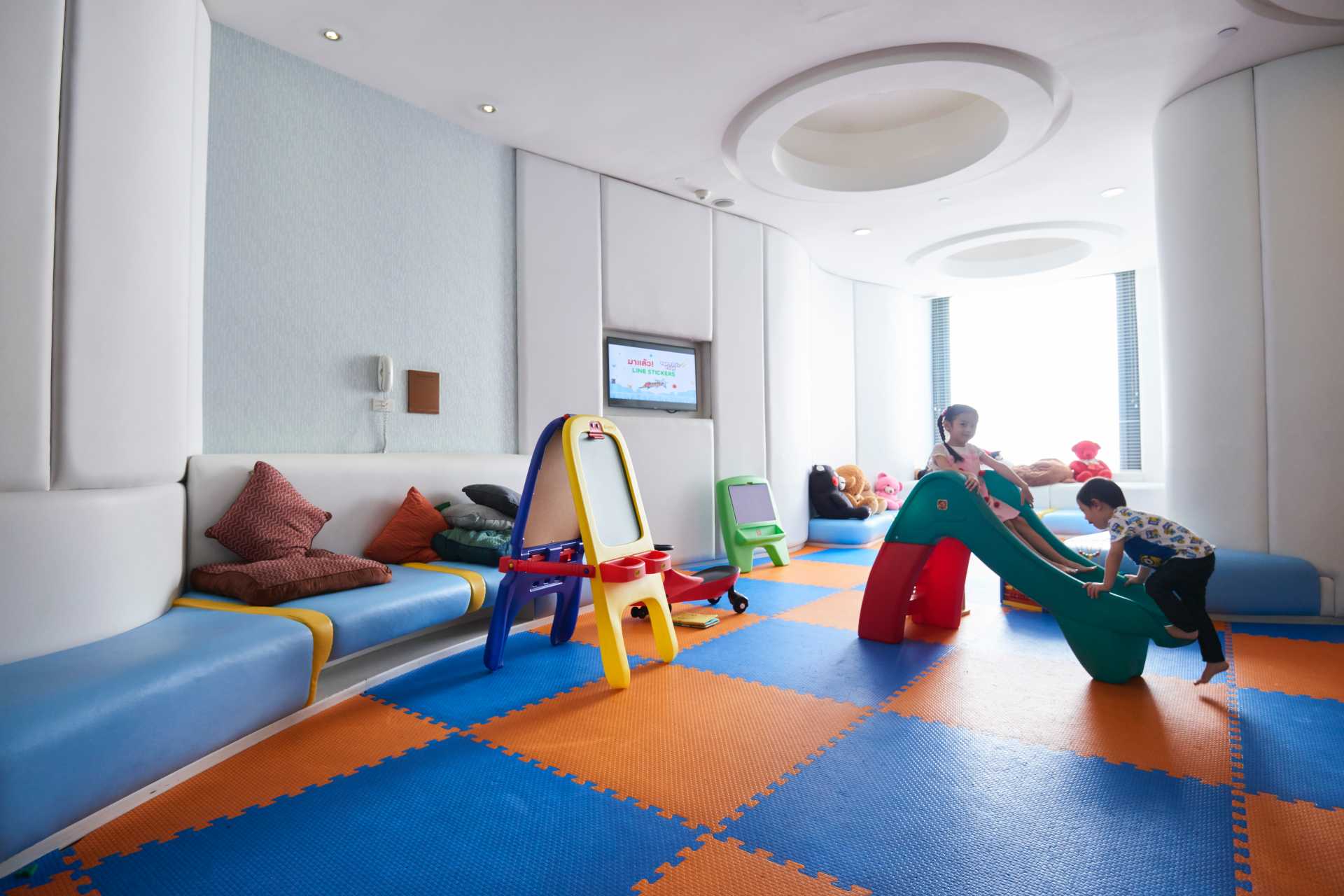 놀이방 자녀들이 놀기에 좋은 장소가 필요하십니까? 자녀와 함께 안전 패딩으로 둘러싸인 환경에 85평방미터 규모의 실내 놀이터가 있는 장난감이 완비된 호텔 놀이방으로 오세요.