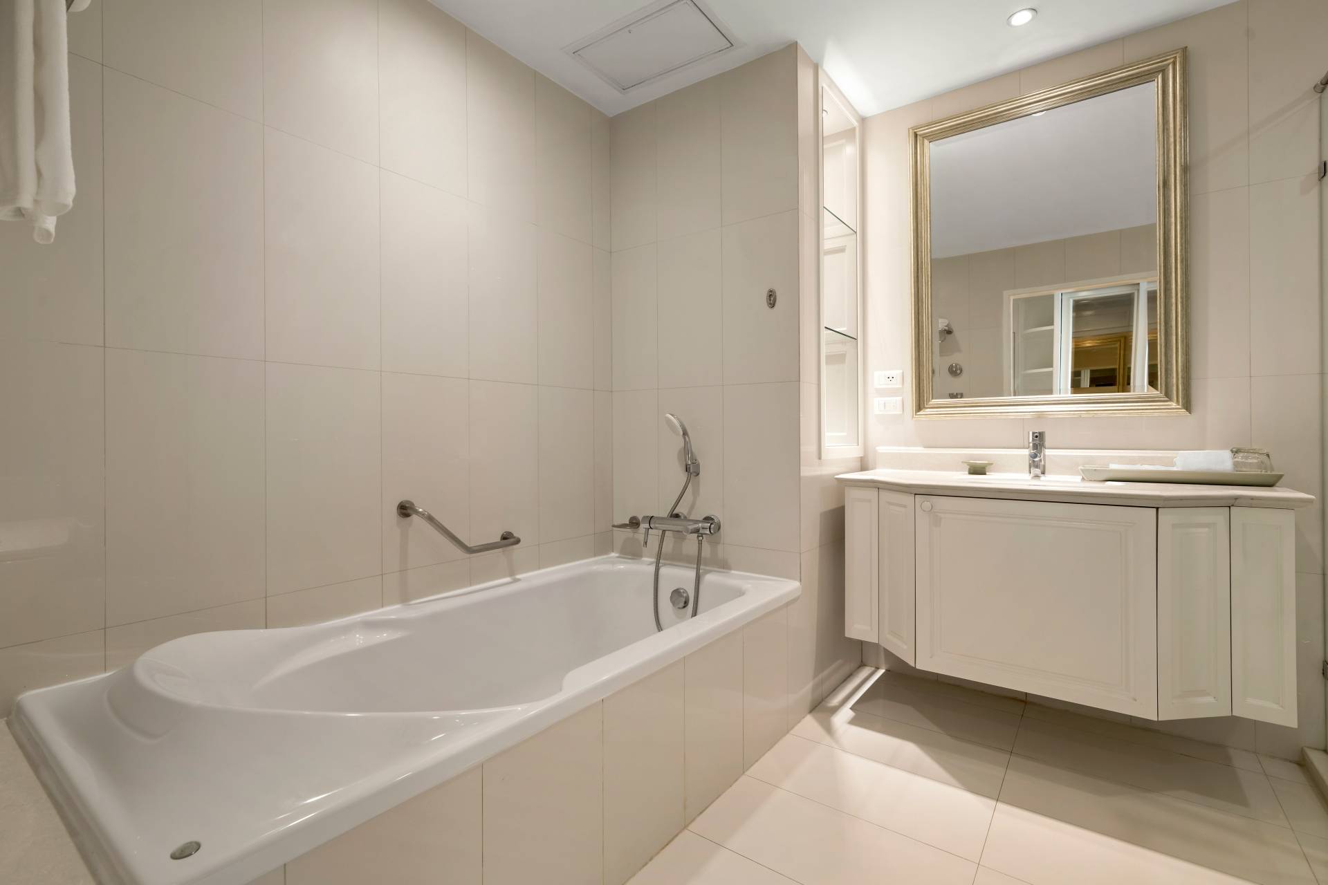 우아한 가구로 장식되고 침실이 2개인 이 스위트룸의 마스터 침실에는 킹사이즈 침대가 있고 보조 침실에는 퀸사이즈 침대가 있습니다. 욕조와 샤워가 분리된 넓은 욕실이 2개 있습니다.